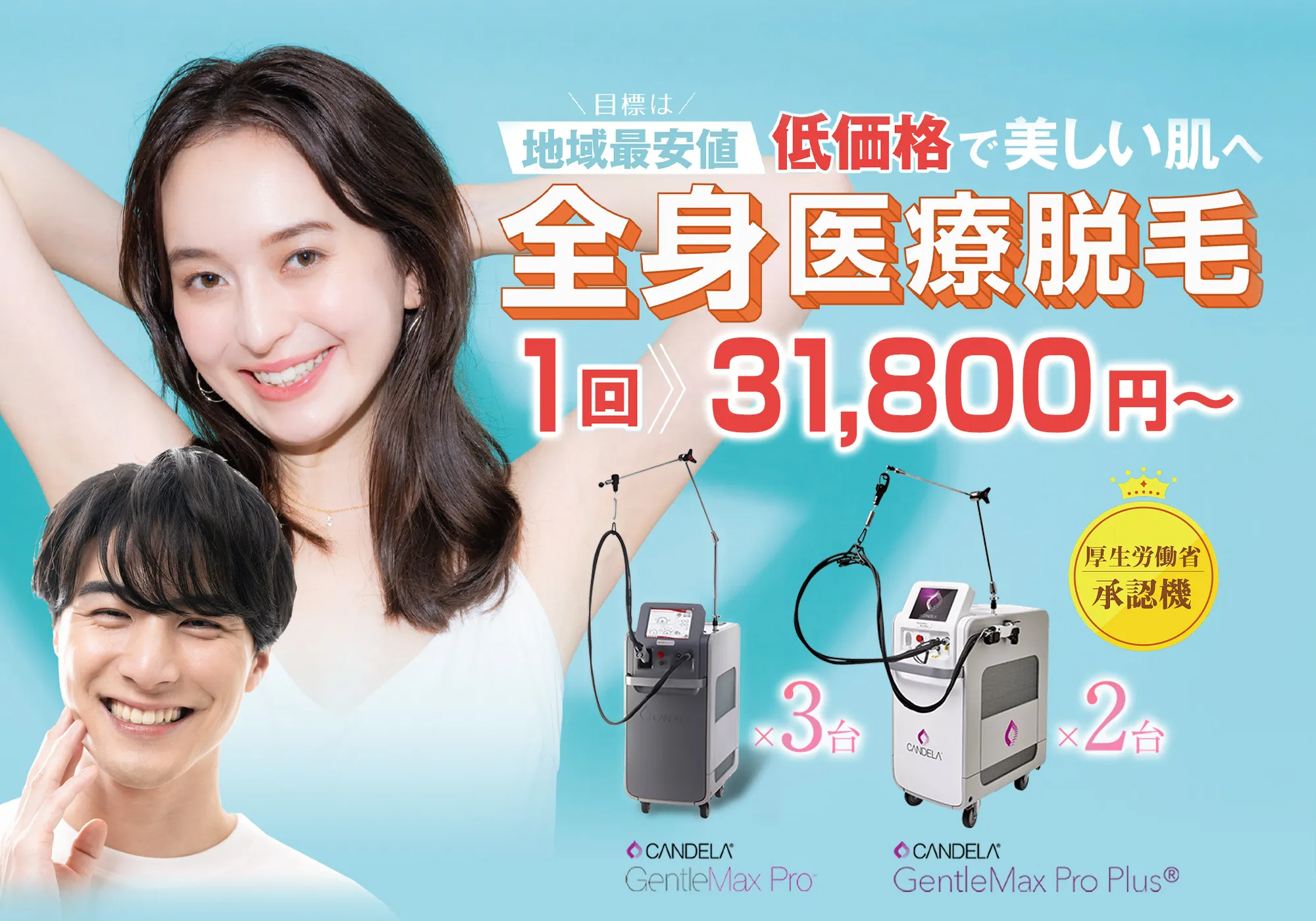 厚生省認可、FDA認可などがない機械は、そもそも脱毛効果が保証されていません。聞いたことのない機械、古い機械、自社開発の機械などはお金をムダにしてしまいます!